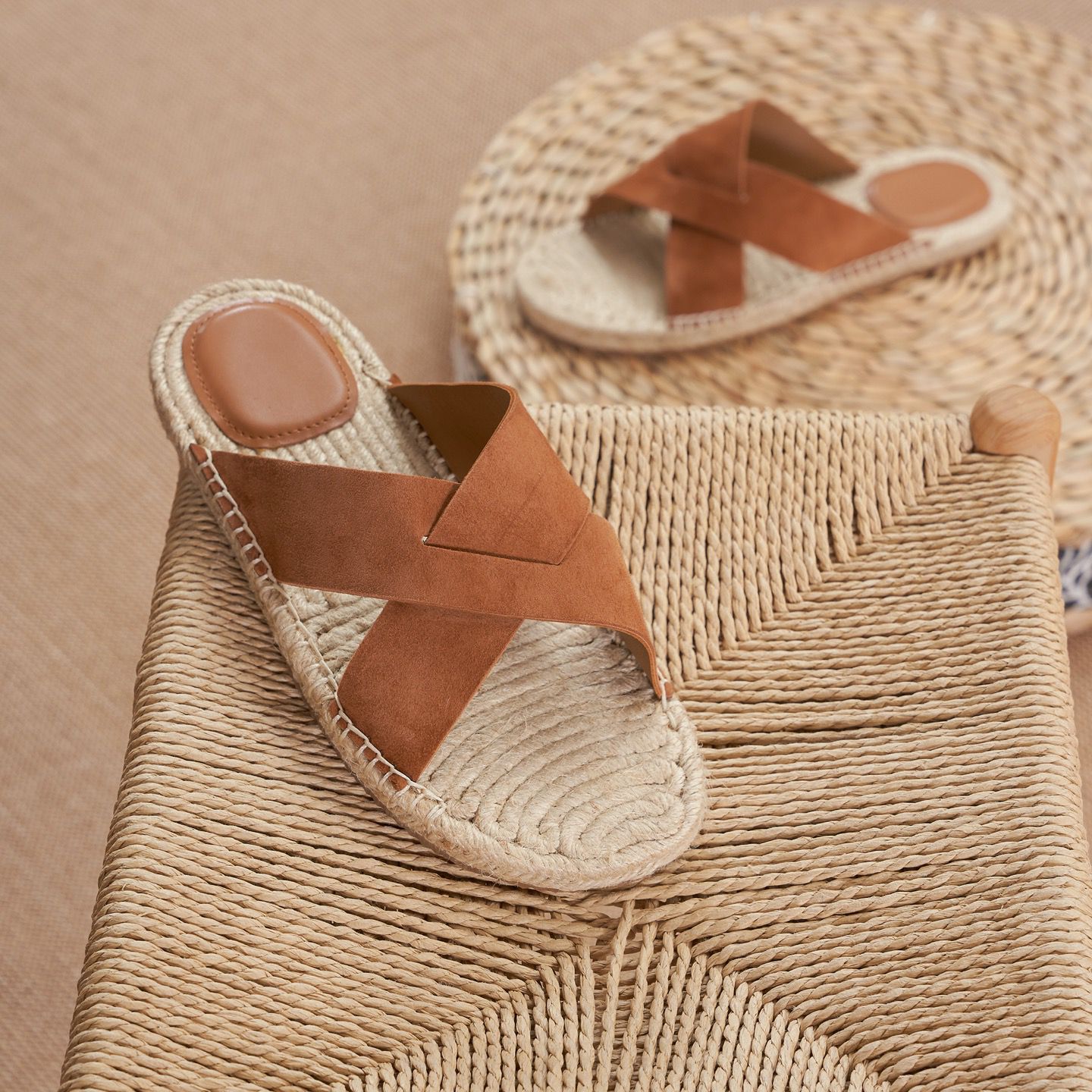 These sandals are crafted with sheep suede uppers that gradually adapt to the shape of your feet for a comfortable fit over time. Set on durable rubber soles with braided jute detailing, they combine lightweight construction with everyday practicality. Suitable for warm-weather wear, from travel to casual city use.
