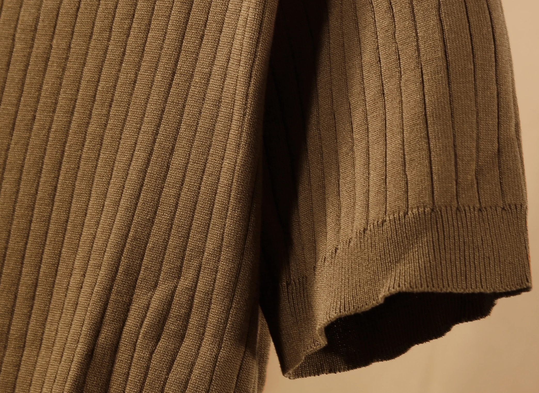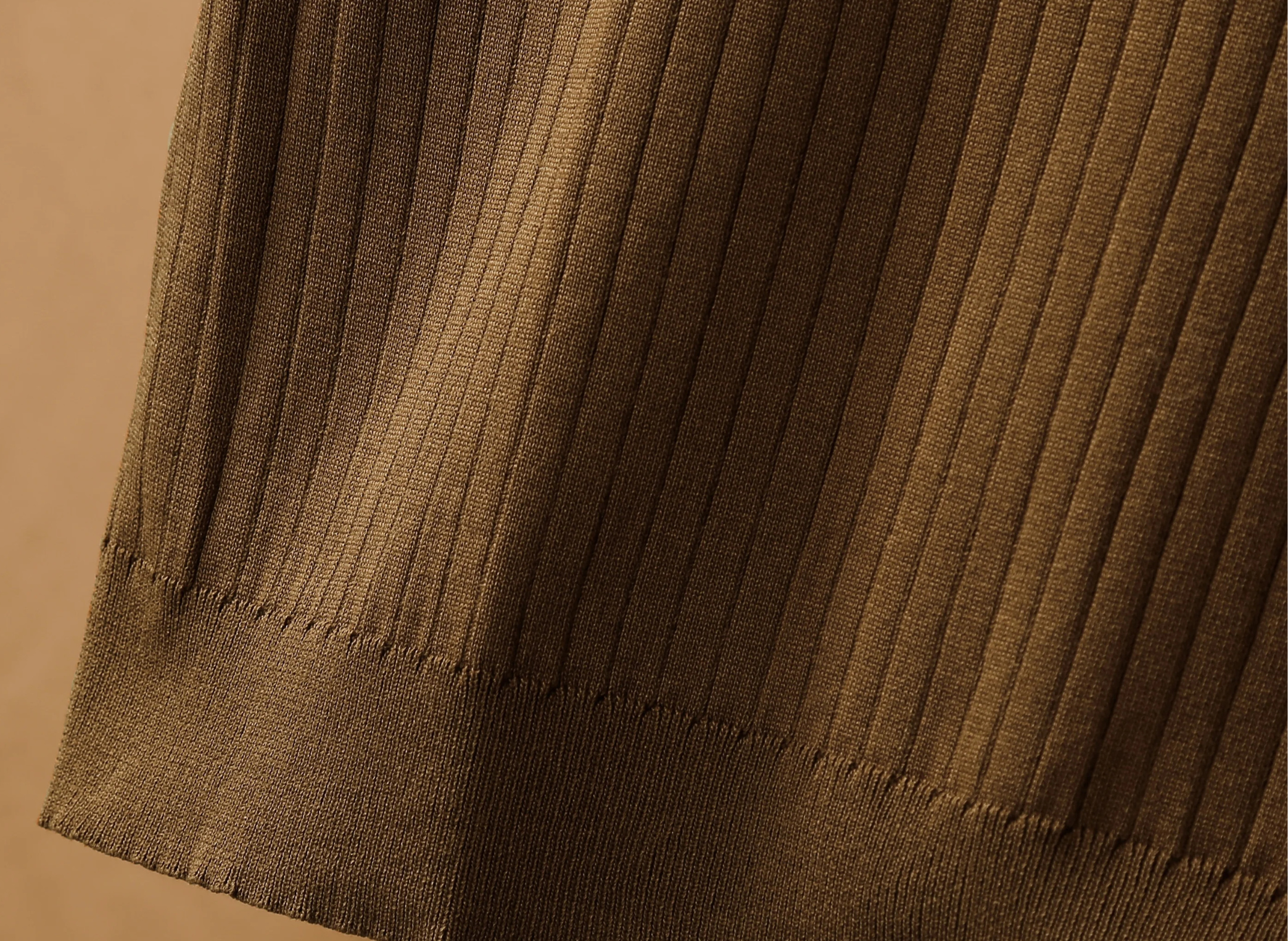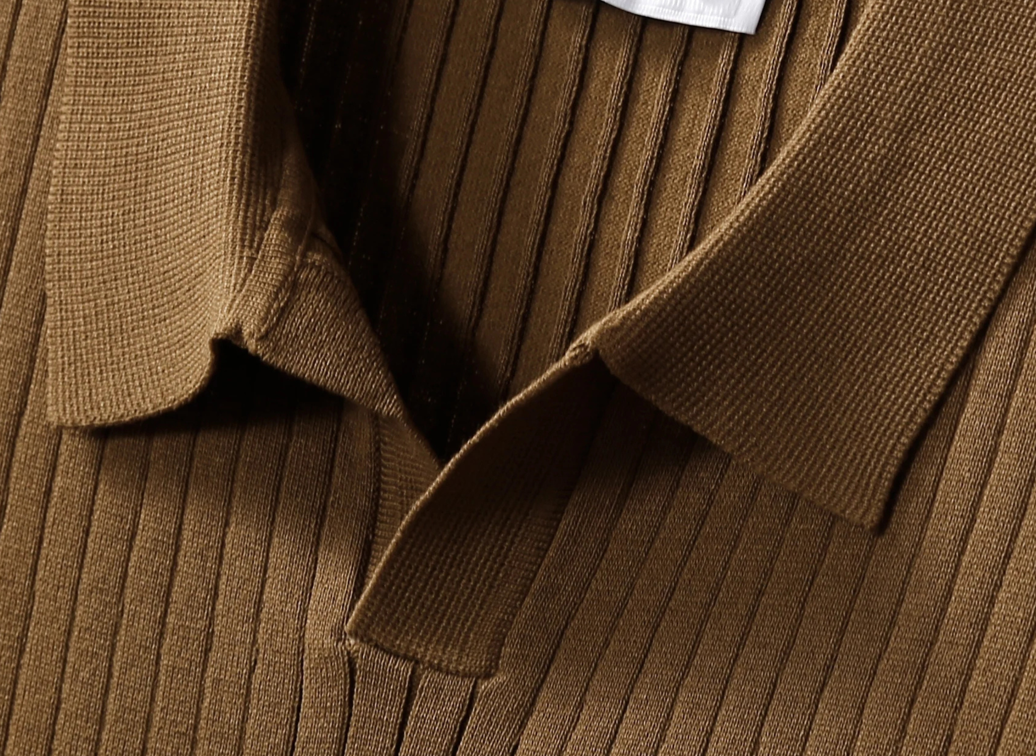 Designed with a regular fit and crafted from soft, lightweight knit fabric, this polo offers breathable comfort ideal for warm-weather days. Its sleek vertical ribbing creates a clean, structured aesthetic, while the open collar neckline adds a relaxed, effortless touch. With its short sleeves and minimalist silhouette, it’s a versatile piece that adapts seamlessly from daytime ease to refined evening wear—perfect for understated summer sophistication.